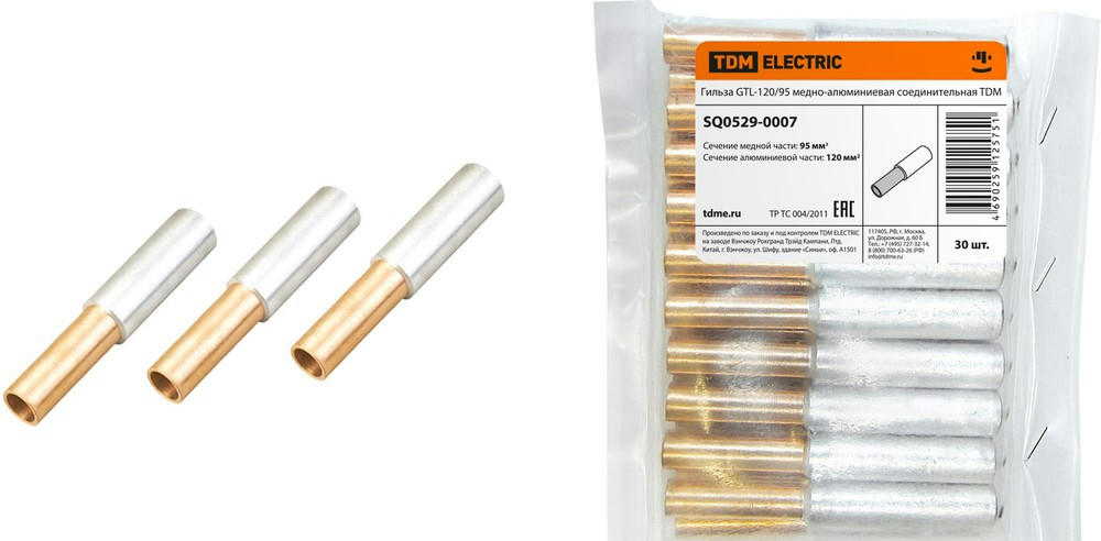 Гильза GTL-120/95 медно-алюминиевая соединительная TDM