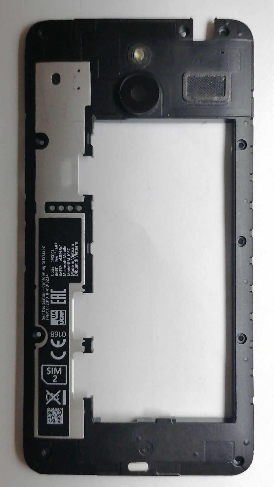 Microsoft Lumia 640 XL DUAL SIM (RM-1067) Средняя часть корпуса+шлейф вспышки (снятый, оригинал)