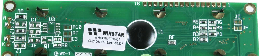 ЖКИ знакосинтезирующий 16 x 1, STN Желто-зеленый Позитивный/прозрачно-отражающий светодиодная подсветка желто-зеленая размеры 122×33 мм, видимая область 99×13 мм, -20…70°C, контактные площадки сверху 16 выводов